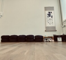 Es gibt zwei Garderoben, eine Toilette und einen kleinen Empfangsbereich mit einer liebevoll eingerichteten Teeküche. Duschen sind keine vorhanden. Der Raum selber ist 85m2 gross und hat eine Spiegelwand über die ganze Länge. Zudem sind zehn Meditationskissen vorhanden, die benutzt werden können. Nach Absprache steht ein Parkplatz zur Verfügung.